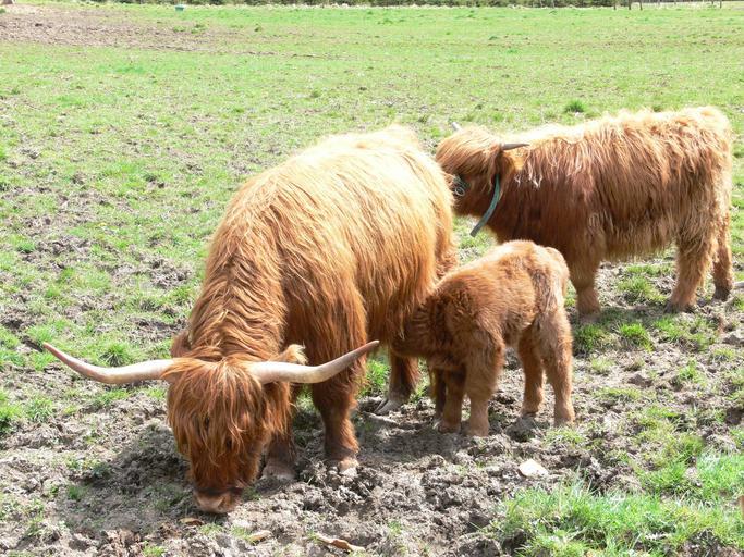 Keywords: highlandrind cow cattle young animal suckle highlands horns scotland farm animal agriculture beef rural nature grass mammal field meat flock head graze summer race