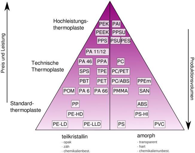 Keywords: Highperformance thermoplastics.svg en Temperature pyramid of thermoplastics Polyamidimid PEEK Polyetheretherketon PPSU PPS PSU PES PA 11/12 PA 46 PPA PC SPS TPE PC/PET PBT PET PC/ABS PPEm POM PA 6 PA 66 PMMA Polymethylmethacrylat SAN Styrol-Acrylnitril PP Polypropylen ABS Acrylnitril-Butadien-Styrol PE-HD Polyethylen PS-HI high-impact polystyrol PE-LD Polyethylen PE-LLD Polyethylen PS Polystyrol PVC Polyvinylchlorid 2013-13-10 22 08 58 own inkscape Minihaa Other versions/Highperformance thermoplastics cc-zero Uploaded with UploadWizard Thermoplastic SVG diagrams in German |
