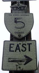 | Keywords: Highway 5 Ontario Trailblazer.jpg en A trailblazer directing drivers to Ontario's Highway 5 Bloor Street mounted on a light standard at the intersection of Bay Street and Cumberland Street in Toronto Canada own GTD Aquitaine 2008-05-31 Highways in Toronto |