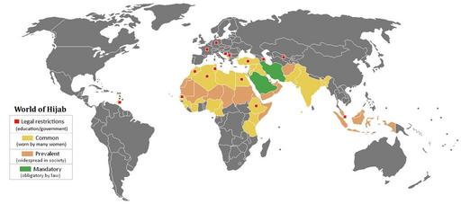 | Keywords: Hijab.png law-related map en Map showing prevalence of Hijab wear across the world and indicating countries where there are restrictions on wearing it own <br>Legal restrictions sources by country <br> Azerbaijan http //www islam com az/modules/news/article php storyid 1098 Morocco http //www prohijab net/english/morocco-hijab-news htmhttp //news bbc co uk/1/hi/world/africa/5413808 stmhttp //parlemento wordpress com/2009/09/30/lambassadeur-du-maroc-a-bruxelles-pour-linterdiction-du-voile-islamique/ Tunisia http //news bbc co uk/1/hi/world/africa/5382946 stmhttp //news bbc co uk/1/hi/world/africa/6053380 stmhttp //www magharebia com/cocoon/awi/xhtml1/en_GB/features/awi/features/2006/10/27/feature-01http //jurist law pitt edu/paperchase/2006/10/tunisia-presses-enforcement-of-muslim php Egypt http //www quantara de/webcom/show_article php/_c-549/_nr-13/_p-1/i html PHPSESSID 133099http //news bbc co uk/1/hi/world/middle_east/3087220 stm Algeria http //news bbc co uk/1/hi/world/africa/7363456 stm Turkey http //www unhcr org/refworld/country IRBC TUR 4885a91a8 0 htmlhttp //www timesonline co uk/tol/news/world/middle_east/article1752230 ecehttp //news bbc co uk/1/hi/in_depth/world/2002/islamic_world/2144316 stmhttp //news bbc co uk/1/hi/world/europe/7441227 stmhttp //news bbc co uk/1/hi/world/europe/country_profiles/1023189 stm France http //news bbc co uk/1/hi/world/europe/3619988 stmhttp //hrw org/english/docs/2004/02/26/france7666 htm Germany http //news bbc co uk/1/hi/world/europe/3591043 stmhttp //www islamfortoday com/hijabgermany htm Senegal http //www islamicvoice com/january 2000/news htm HIJ Singapore http //news bbc co uk/1/hi/talking_point/debates/south_asian/1803073 stm Kosovo http //www bbc co uk/news/world-europe-11065911 Candelabra 2008-09-29 thumb Hijabs 2008 in Egypt |