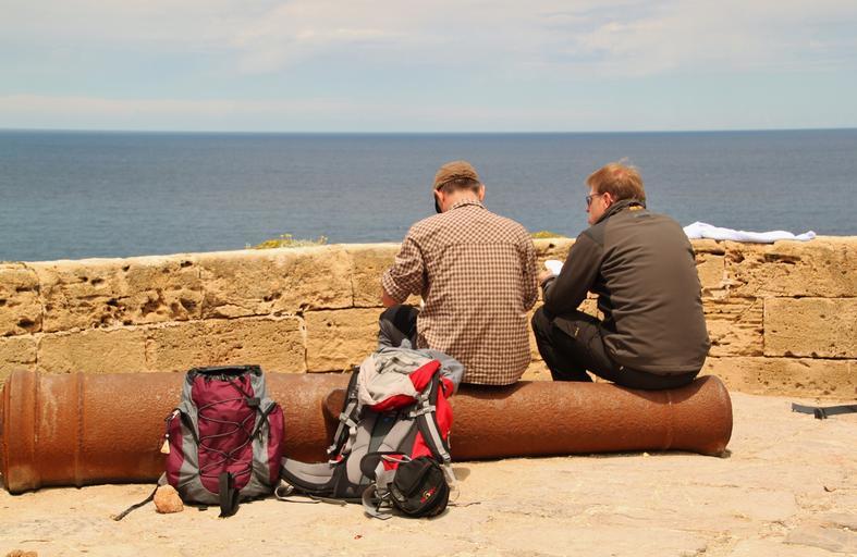 | Keywords: hiking wanderer break hike backpack backpackers day trip hiking tour person human men rest click barrel of a gun defensive tower sea sea view nature platform view observation deck outlook distant wide horizon gun holiday spain sunlight wall stone wall sit rest pause vision foresight recovery seat |