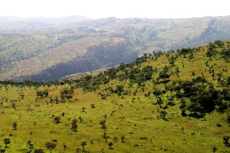 Keywords: hill green sloping rolloing high aerial view grass veld distant hills