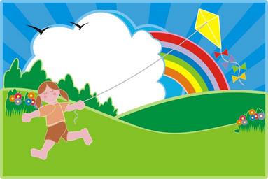 Keywords: hill meadow fly fun park bird cloud field kite outside recreation youth young girl run outdoors sky play exercise rainbow cartoon action sport
