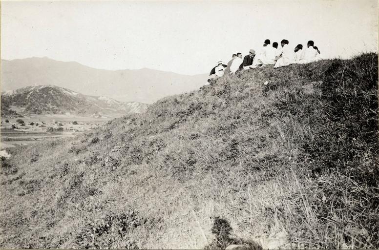 | Keywords: Hilltop prayer meeting, Wonju, (s.d.) (Taylor box21num63).jpg  en <br> Hilltop prayer meeting Wonju s d A group of Korean Christians and missionaries gathered with Bishop Lewis on a little hilltop near Wonju Date created 1908/1922 Publisher of the Digital Version University of Southern California Libraries Repository Name Methodist Church U S Legacy Record ID kda-m130 Photographer Methodist Episcopal Church Format photograph Archival file kda_Volume42/Taylor_box21num63 jpg Rights Neither the General Conference nor any General Agency of The United Methodist Church successor to the Methodist Episcopal Church claims any interest in the photos or images Part of subcollection The Reverend Corwin Nellie Taylor Collection Coverage date 1908/1922 Contributing entity University of Southern California Repository Address Nashville Tennessee Part of collection Korean Digital Archive Donor Taylor Ewing Bevard Filename Taylor_box21num63 Type images Geographic Subject City or Populated Place Wonju Geographic Subject Country Korea Compiler Taylor Corwin; Blood-Taylor Nellie 1908/1922 Methodist Episcopal Church http //digitallibrary usc edu/cdm/ref/collection/p15799coll48/id/760 PD-Japan-oldphoto Korean archive in the USC digital library Images from USC Digital Library uploaded by Fæ |