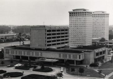 | Keywords: Hilton College of Hotel and Restaurant Management Building UH.jpg en A view of the University Campus including the Conrad N Hilton College of Hotel Restaurant Management and the Moody Towers residence halls The Hilton Hotel and Conference Center was dedicated on June 17 1971 but not occupied until 1974 The architects were Pierce Pierce The Moody Towers are twin high-rise student residence halls designed by architects Pitts Phelps White and occupied in 1970 http //digital lib uh edu/u /p15195coll3 252 University of Houston Digital Library 1974-2000 This image is in the public domain and may be used freely If publishing in print electronically or on a website please use the citation Courtesy of Special Collections University of Houston Libraries To order a higher resolution reproduction see http //info lib uh edu/about/campus-libraries-collections/special-collections-archives/request-digital University of Houston Libraries University of Houston Conrad Hilton |