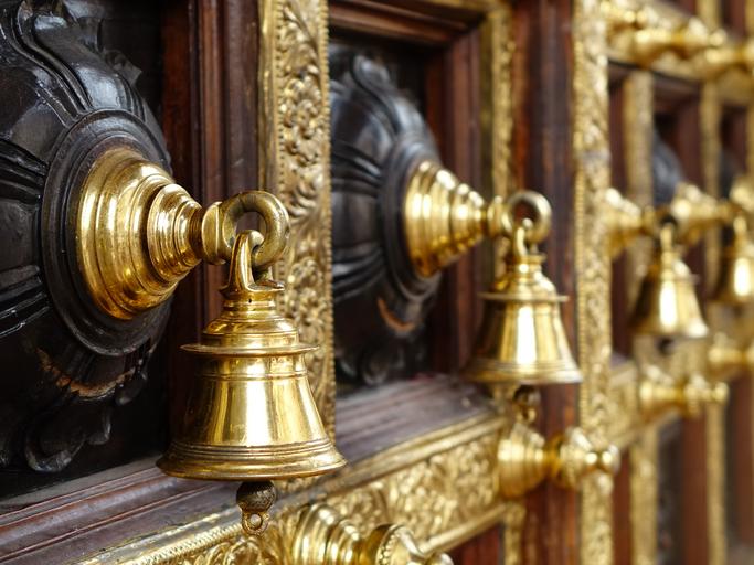Keywords: hindu temple bells wooden door architecture golden ringing brass ritual worship spirituality