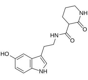 Keywords: HIOC.svg Chemical structure of HIOC N-2- 5-hydroxy-1H-indol-3-yl ethyl-2-oxopiperidine-3-carboxamide Own 11 07 24 January 2015 UTC Ed Edgar181 Tryptamines Delta-lactams