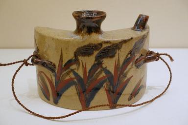 | Keywords: Hip flask, Okinawa, 20th century, glazed stoneware with iron and cobalt underglaze and polychrome overglaze - Ethnological Museum, Berlin - DSC02047.JPG en Exhibit in the Ethnological Museum Berlin Germany Photography was permitted in the museum without restriction 2014-11-11 10 48 24 own Daderot other versions cc-zero Ceramics of Okinawa in the Ethnological Museum Berlin Uploaded with UploadWizard | ||||