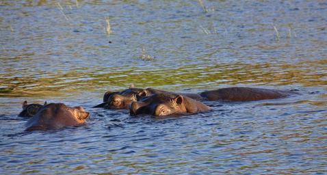 Keywords: hippo hippopotamus river water chobe botswana africa animal wild safari green grey blue
