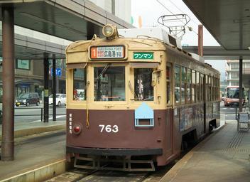 | Keywords: Hiroden6543.jpg A Hiroden streetcar at Hiroden Hiroshima Station in Hiroshima Japan I took this photo and contribute my rights in the file to the public domain; people and organizations retain rights to images in it Hiroden 750 series Trams on route 1 Brown and yellow trams Osaka City Tram Number 763 on trams |