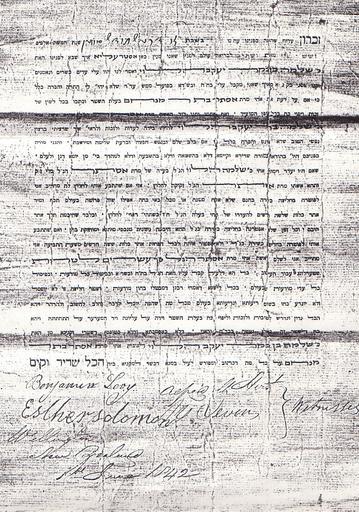 | Keywords: Historic New Zealand Ketuba or Yibbum (marriage contract).jpg en The thick parchment document names in Hebrew the bride and groom the groom's father Jacob Levy and the groom's brother Solomon Levy It includes a promise to take care of the bride and/or offer to marry her if the husband dies before any children are born an ancient custom that was not expected to be carried out but which represented that the brother would care for his sister in law if needed The signatures are in English and mark the wedding of two London Jews Esther Solomon whose writing is semi-illiterate and Benjamin Levy whose writing is more polished possibly a reflection of his patrons at the Jews Hospital a LOndon charity that educated and cared for impoverished Jewish children provofong rudimentary vocational training but requiring rigorous adherence to Jewish rites On the certificate the witnesses are listed two Jewish non-relatives as was customary Abraham Hort and Nathaniel Levin were important early settlers of wellington and this marks the first Jewish wedding in Wellington New Zealand 2011-07-14 This was handed down to me by my grandmother It was the wedding certificate of her great grandmother Esther Solomon Levy 1824 Kent England-1911 Victoria BC A note with it from another relative states that Esther had it notarized as authentic later in life THis probably coincided with the 1870's Victoria BC marriage of her daughter Phoebe 1854-1926 as an orthodox Jewish woman would be able to show that her own marriage was valid and her daughter properly Jewish It is a Hebrew template that was filled in and signed by my ancestors PD-old-100 Uploaded with UploadWizard Ketubah Ceremonies in New Zealand Judaism in New Zealand Marriage certificates |