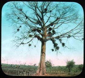| Keywords: botany expedition botanyexpedition 1898 1899 charles millspaugh charlesmillspaugh edward allen edwardallen edward isham jr. edwardishamjr jordan mott jr. jordanmottjr bermuda bahamas haiti jamaica puerto rico cuba yucatan central america centralamerica west indies westindies plant collecting plantcollecting blue tree mistletoe parasite plant Historic silk cotton tree with fence around it. Unidentified expedition members, verify if one has tripod and camera. Men standing at base. 1899. Name of Expedition: Allison V. Armour Expedition Participants: Charles F. Millspaugh, Edward P. Allen, Edward S. Isham Jr.,Jordan L. Mott Jr. Expedition Start Date: December 21, 1898 Expedition End Date: March 11, 1899 Purpose and Aims: Plant collecting and photography for Botany in the Bermuda, Bahamas, Haiti, Jamaica, Puerto Rico, Cuba, Yucatan. Vessel Name: Utowana (Yacht, Sailboat) Location: Central America, Cuba Original material: Hand Colored Lantern Slide Digital Identifier: CSB4303c Learn more about The Field Museum's Library Photo Archives. Historic silk cotton tree with fence around it. Unidentified expedition members, verify if one has tripod and camera. Men standing at base. 1899. Name of Expedition: Allison V. Armour Expedition Participants: Charles F. Millspaugh, Edward P. Allen, Edward S. Isham Jr.,Jordan L. Mott Jr. Expedition Start Date: December 21, 1898 Expedition End Date: March 11, 1899 Purpose and Aims: Plant collecting and photography for Botany in the Bermuda, Bahamas, Haiti, Jamaica, Puerto Rico, Cuba, Yucatan. Vessel Name: Utowana (Yacht, Sailboat) Location: Central America, Cuba Original material: Hand Colored Lantern Slide Digital Identifier: CSB4303c Learn more about The Field Museum's Library Photo Archives. |