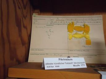 Keywords: Historische Farbstoffsammlung DSC00348.JPG de Blick in die Historische Farbstoffsammlung der TU Dresden de Historische Farbstoffsammlung der TU Dresden own JWBE 2012-06-08 Cc-zero Historische Farbstoffsammlung Picric acid