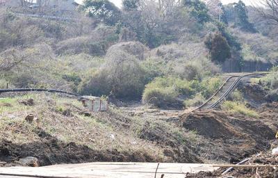 | Keywords: -Hitachinaka kaihin railway minato line no1.JPG en Railway track of Hitachinaka Seaside Railway damaged by 2011 Tōhoku earthquake Hitachinaka Ibaraki Japan ja 北 方太平洋沖 後のひたちなか海 鉄道湊線 池踏切付近 田方 での液状化現象による道床流失による被害状況 線路と枕 が浮いている状態になっている ja 投稿 が撮影 toshinori baba 2011-04-10 Cc-zero Hitachinaka Seaside Railway 2011 Tōhoku earthquake damage and effects in Ibaraki prefecture Damaged rail transport infrastructure | ||||
