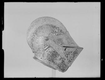 | Keywords: Hjälm så kallad armet, ingående i Sigismund Augusts rustningsgarnityr för man och häst - Livrustkammaren - 19275.tif Kunz Konrad Lochner sv Driven stålplåt med på utsidan etsad och kallemaljerad dekor Sammanlagt fem delar <br/>Klockan rundad lätt utdragen bakåt och uppåt med rundade släta sidor Upptill mjukt övergående i hög kam 50 mm avsmalnande framåt och bakåt Repstavsfilad Kammen framtill övergående i spetsig mittås Baktill vänster om kammen en förgylld plymhållare h 60 mm Rörformig nedåt avsmalnande med kanterna omvikta rundsmidda och filade med snedställda linjer Åt sidorna rundade vingar fästad med en nit <br/>Pannklaff med välvda bakåt utdragna sidor med rundade ändar Upptill i mitten driven ås som en fortsättning på klockans kam Spetsigt framparti hopgående med mittåsen Synspringor l 120 mm i mitten delade av åsens fortsättning I höger framkant 90 mm lång ten med cirkulärt tvärsnitt med yttre änden böjd och pekande ut 5 mm genom ett hål i pannklaffens kant <br/>Visir med svagt välvda och rundade kanter bakåt utdragna till smala skenor Framtill spetsig mittås med rak och nedåt inåtlutande profil I högra sidans nederkant en ögla och nedanför denna en blomformig nit rörlig i höjdled och på insidan förbunden med snett uppåtriktad ten Tenens övre ände fäst med nit <br/>Hakstycke i två delar hopgående omlott över hakan med vänster stycke över det högra Rundade konkava inre sidor Drivet hakparti med mittås I bakre kanterna gångjärn fäst med tre nitar I högra styckets kant en 20 mm djup urtagning för visirets nit Över kinden en nit med reter av avbruten del Över varje öra åtta runda hål Låsmekanism över hakan med på höger sida tapp och på vänster hål tappen låses med platt hasp av mässing <br/>Pannklaff visir och hakstycke gemensamt fästade i sidorna med genomgående skruv Mot utsidan mutter diam 20 mm rundad och formad som en blomma med tvärs över ett djupt spår för att vrida muttern Hjälmens nedre kanter formad till välvd rund och repstavsfilad skena för att löpa över kragens rundade kant <br/>Hjälmens insida svärtad med över panna och nacke nitade läderband På hackstycket foder av gult sidentyg med baksida av linnelärft Mjuk stoppning liknande vadd original caption decade 1550 leather - steel plate - linen - steel g 2550 size mm 280 220 360 LRK Sigismund II August av Polen Johan III av Sverige Hästen 1977 Sweden - A Royal Treasury 1988-1989 Eagle and Three Crowns 2002 Eagle and Three Crowns 2002 Quasi centrum Europae 2002 Major kings residing in Cracow 750årsjubileum av Krakows grundande 2007 Imagines potestatis - Regalia and Symbols of Authority of Polish Kings and Grand Masters of the Teutonic Knights 2007 Vasadynastin i Polen place of origin Nürnberg original filename LN_E00298 62721 inventory number LRK 26053 19275 CC0 Hjälm så kallad armet ingående i Sigismund Augusts rustningsgarnityr för man och häst - Livrustkammaren - 19275-negative tif <gallery caption Different images of same object > File Hjälm armet Lochner - Livrustkammaren - 77248 tif File Hjälm armet Lochner - Livrustkammaren - 202 tif File Hjälm sk armet ingående i Sigismund Augusts rustningsgarnityr för man och häst - Livrustkammaren - 77976 tif File Hjälm sk armet ingående i Sigismund Augusts rustningsgarnityr för man och häst - Livrustkammaren - 396 tif File Hjälm - Livrustkammaren - 60137 tif File Hjälm - Livrustkammaren - 51576 tif File Hjälm - Livrustkammaren - 43016 tif File Hjälm - Livrustkammaren - 34458 tif File Hjälm sk armet ingående i Sigismund Augusts rustningsgarnityr för man och häst - Livrustkammaren - 78320 tif File Hjälm - Livrustkammaren - 17334 tif File Hjälm - Livrustkammaren - 25896 tif File Hjälm armet Lochner - Livrustkammaren - 77246 tif </gallery> <gallery caption Related objects > File Sadel ingående i Sigismund Augusts rustningsgarnityr för man och häst - Livrustkammaren - 43197 tif LRK 26042 File Häststjärna - Livrustkammaren - 60135 tif LRK 26043 File Sadel ingående i Sigismund Augusts rustningsgarnityr för man och häst - Livrustkammaren - 9132 tif LRK 26042 File Häststjärna - Lochner - Livrustkammaren - 34283 tif LRK 26043 File Sadel ingående i Sigismund Augusts rustningsgarnityr för man och häst - Livrustkammaren - 1190 tif LRK 26042 File Sadel ingående i Sigismund Augusts rustningsgarnityr för man och häst - Livrustkammaren - 17497 tif LRK 26042 File Gumshorn på hästrustning i förgylld stålplåt - Livrustkammaren - 91533 tif LRK 26043 File Sadel Lochner - Livrustkammaren - 8652 tif LRK 26042 File Sadel ingående i Sigismund Augusts rustningsgarnityr för man och häst - Livrustkammaren - 60259 tif LRK 26042 File Bogpansar ingående i Sigismund Augusts rustningsgarnityr för man och häst - Livrustkammaren - 26960 tif LRK 26046 File Ryggharnesk ingående i Sigismund Augusts rustningsgarnityr för man och häst - Livrustkammaren - 69702 tif LRK 26059 File Benpansar - Livrustkammaren - 17332 tif LRK 26068 File Ländpansar ingående i Sigismund Augusts rustningsgarnityr för man och häst - Livrustkammaren - 35521 tif LRK 26047 File Benskena med harnesksko höger ingående i Sigismund Augusts rustningsgarnityr för man och häst - Livrustkammaren - 61199 tif LRK 26068 File Häststjärna - Livrustkammaren - 211 tif LRK 26043 File Manpansar ingående i Sigismund Augusts rustningsgarnityr för man och häst - Livrustkammaren - 61200 tif LRK 26044 File Benskena med harnesksko höger ingående i Sigismund Augusts rustningsgarnityr för man och häst - Livrustkammaren - 69762 tif LRK 26068 File Hästrustning - Livrustkammaren - 72697 tif LRK 26042 File Sadel - Livrustkammaren - 68697 tif LRK 26042 File Armskenor - Livrustkammaren - 43014 tif LRK 26062 File Ländpansar ingående i Sigismund Augusts rustningsgarnityr för man och häst - Livrustkammaren - 9836 tif LRK 26047 File Axelstycke h - Livrustkammaren - 68698 tif LRK 26060 Fil