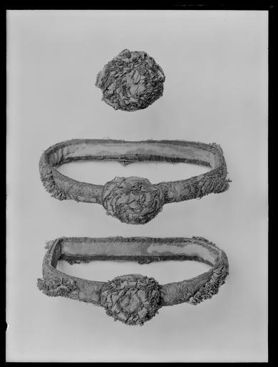 | Keywords: Hjälmkrans faveur - Livrustkammaren - 34353.tif Hattband hjälmkrans 1600-talets början möjligen tornerpris s k faveur <br/>Band b 28 mm stoppad och trädd på hård stomme Klädd med mörkröd sidenatlas med broderi av silvertråd i form av fyrbladiga blommor samt rankor Mitt fram en ros av urspr rosa sidenband numera blekta kantade med virkad silvertråd Runt kran-sen i övrigt fem snedställda veckade likadana band <br/><br/>Insidan fodrad med ett naturfärgat linneband <br/><br/>Enl kat 1932 537 kallade Hatteband gammalt mode i inv 1672 och ingående bland livréerna original caption hjälmkrans faveur -LRK 12604 early other date century 17 silver thread - silk Färg rosa material siden - linen g 130 size mm 210 LRK Gustav II Adolf av Sverige Riddartid - sköna riddare och tappra jungfrur 2002 Fest och fritid vid hovet 2003 place of origin original filename LN_A01084_001084 49134 inventory number LRK 12604 34353 CC0 Hjälmkrans faveur - Livrustkammaren - 34353-negative tif <gallery caption Different images of same object > File Hjälmkrans faveur - Livrustkammaren - 42911 tif File Hjälmkrans faveur - Livrustkammaren - 42929 tif File Hjälmkrans faveur - Livrustkammaren - 51471 tif </gallery> Media contributed by LSH unmatched material Media contributed by LSH unmatched objKeyword Media contributed by LSH without any categories Armour in the Livrustkammaren Media contributed by LSH 2013-10 |