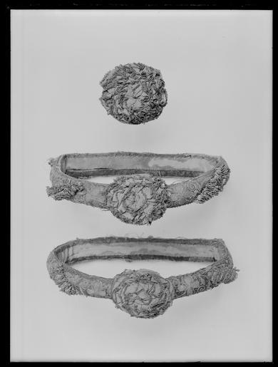 | Keywords: Hjälmkrans faveur - Livrustkammaren - 51471.tif Hattband hjälmkrans 1600-talets början möjligen tornerpris s k faveur <br/>Band b 28 mm stoppad och trädd på hård stomme Klädd med mörkröd sidenatlas med broderi av silvertråd i form av fyrbladiga blommor samt rankor Mitt fram en ros av urspr rosa sidenband numera blekta kantade med virkad silvertråd Runt kran-sen i övrigt fem snedställda veckade likadana band <br/><br/>Insidan fodrad med ett naturfärgat linneband <br/><br/>Enl kat 1932 537 kallade Hatteband gammalt mode i inv 1672 och ingående bland livréerna original caption hjälmkrans faveur -LRK 12604 early other date century 17 silver thread - silk Färg rosa material siden - linen g 130 size mm 210 LRK Gustav II Adolf av Sverige Riddartid - sköna riddare och tappra jungfrur 2002 Fest och fritid vid hovet 2003 place of origin original filename LN_A01086_001086 49134 inventory number LRK 12604 51471 CC0 Hjälmkrans faveur - Livrustkammaren - 51471-negative tif <gallery caption Different images of same object > File Hjälmkrans faveur - Livrustkammaren - 42911 tif File Hjälmkrans faveur - Livrustkammaren - 34353 tif File Hjälmkrans faveur - Livrustkammaren - 42929 tif </gallery> Media contributed by LSH unmatched material Media contributed by LSH unmatched objKeyword Media contributed by LSH without any categories Armour in the Livrustkammaren Media contributed by LSH 2013-10 |