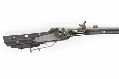 | Keywords: Hjullåsbössa, 1620-1635 - Skoklosters slott - 90890.tif LSH artwork sv Hjullåsbössa Polen eller Saschen 1620-1635 ca <br/>Åttkantig pipa av stål 6 räfflor Profilerar rörsikte av stål stolpkorn av mässing På pipans undersida stämpel med C-L och bomärkta STöckel nr 2248 Polen 1620-1635 <br/>Hjullås Låsblecket bakåt avsmalnande genom ett fall Utan dekor Hjulet fastskruvat med ring kl 9 och kl 3 Mycket låg vertika krutskärm Hane med lös överkäke Kort finggrepp Vertikalhjulstudel <br/>Hel stock av svärtat trä Lång smal kolv av tysk typ Inläggningar av ograverade pärlemorplattor Bakplåt av horn Näsband och rörka av graverat ben Vid laddstocksrännans bas benplatta med graverad mansbyst profil v Varbygel med 1 5 fingerläge <br/>Tillbehör saknas <br/>Märkt 90 ovanför låsblecket stanstyp 5373 <br/>Rött lacksigill ovanför kolvlådan <br/>1710 års inventarium p 9 rum II 122-90-1 D o Reflebyssa med Hiulåås Swart stock inlagd medh litet perlemo 7 behttar borta -6- original caption Hjullåsbössa 1620-1635 <br/> Nyckelord Hjullåsbössa Föremålsbild Dekorerade ca other date - 1620 1635 wood - steel - mother-of-pearl size mm 116 size mm 1022 pipa size mm 1305 SKO place of origin Saxony eventuellt PL eventuellt original filename sm_dig7569 32971 inventory number SKO 12891 90890 CC-BY-SA Erik Lernestål Decoration Wheellock firearms Muskets Photographs of weapons by Erik Lernestål Media contributed by LSH dim-with multiple size templates Media contributed by LSH 2016-05 |