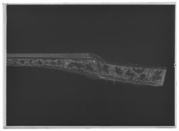 | Keywords: Hjullåsbössa, Tyskland (Suhl ca 1580, stocken möjligen den s.k. Mästaren med slotten - Livrustkammaren - 10542-negative.tif LSH artwork Virgils Solis konstnär grafiker Barthel Beham konstnär sv Rund slätborrad blånerad pipa med trumf och åttsidig kammare Rektangulärt böjt svansskruvblad Pipans ovansida täckt av nästan yttäckande påslagen dekor av guld och silver rankverk samt på pipans runda del två ovala kartuscher På kammarenssidofaser vid pipbasen stämplar i form av musselskal LRK vägl 1921 195 Därframför en stående naken kvinna med guldslöja över skötet i h hand ett timglas Tiden därovanför textband BEDENCK D S END På kammarens sidor i rankverket infogade framåt springande hundar rävar och harar av guld och silver Baktill på pipans runda del i den bakre kartuschen en stående kvinna med naken överkropp hellång guldkjol i h hand en guldvåg i v ett svärd med guldfäste Mittpå den runda delen i den främre kartuschen en stående kvinna huvudet profil h lång klänning av guld i h hand ett palmblad av guld i den v en otydlig figur stadsmodell 55 mm från mynningen en graverad björn på ryggen uppåtriktade svinbortsliknande hår sittande och spelande på en säckpipa av guld Riktmedel Mellan kartuscherna björnen och kornet påslaget en silversiktlist Inlaxade riktmedel siktet saknas korn av silver Fästning Tre häften Pipan fäst med krysskruv underifrån varbygelskruven samt tre nya pipstift av trä Hjullås med plant blånerat bakåt i avsatser avsmalnande låsbleck av stål litet rundat ändutskott Hjul fäst med inåtlutande ring samt välvd hjulkapsel Fängpanna utan krutskärm lock med rörlig rektangulär arm Tryckknapp med svagt välvt huvud med skruvskåra Lång hane med kropp med fyrsidigt tvärsnitt innerkanten fasad nästan ringformig hanhals Överkäken lös kort svagt uppåtsvängt fingergrepp med ändvulst Hanskruv med fyrsidigt huvud Kraftig hanfjäder främre delen med rundade kanter bakre hälften med rankdekor ingen studel långt spetsigt åsat löv På låsblecket hjulkapseln och fängpannegaveln påslagen dekor av guld och silver rankverk och bakom hjulet två guldfåglar och en av silver framför hjulet ett bakåtseende rovdjur med kort svans och prickig päls leopard Nedanför säkringsfjädern samma stämpel som på pipan På fängpannelocket en graverad lejonmaskaron på armen ett serafhuvud med vingarna riktade bakåt På hanen graverad bladdekor på ringen på spetsen en maskaron Säkring Bakom hjulet virvelsäkring med ringformigt fingergrepp fjäder med streckdekor studel med droppformigt svagt välvt löv med mittstreck Fästning Två låsskruvar Avtryckare Rak avtryckare med liten ändkula i avtryckarblecket en ställskruv infälld i kolven Helstock av valnöt med liten vinge kolvlåda och sluten laddstocksränna Nästan yttäckande dekor av vita och grönfärgade beninläggningar hjorthorn Bakplåten samt kantlisterna runt kolvänden saknas nästan helt Utefter stockens kanter lister med beslagsornamentik och flätmönster bakre delen av listen till h om kolvryggen ersatt Vid svansskruvbladets sidor två benplattor med nakna musicerande pojkar till v en lutspelare till h en med fiddla På kolvryggen bakom svansskruvbladet en platta med en mansbyst skäggigt ansikte därbakom ett rankverk och tre papegojor vindruvsklasar fruktfat samt en karyatid På kolvens h sida ovanför kolvlådelocket en figurscen med nakna människor Helenas bortrövande från h ryttare med spjut ersatt båt och två män som hjälper Helena stiga upp i båten stridsscen med 8 stående och en liggande man med klubbor och sköldar till h därom två bågskyttar en ryttare och ytterligare två bågskyttar Kolvlådelock med plan platta av hjorthorn därpå en stående kvinna huvudet profil v klänning och mantel i h hand ett brinnande hjärta i v en pil upptill text VENVS träplattan och fjädern utbytta Framför locket likaså en utbytt benplatta med bladdekor På anslaget en figurscen med Pauli omvändelse till v två ryttare med stegrande hästar en häst utan ryttare Paulus halvliggande på marken och ovanför honom ett moln och Guds bild längst till h ryttare Paulus och ryttarna i antikiserande rustningar Mellan låsskruvarna jaktscen med ryttare med spjut till v hjort som tvingats på knä av två hundar På framstockens sidor jakt- och djurbilder På v sida bakifrån ryttare med tvåklogaffel och vildsvin som står över en fallen jägare två hundar; jägare vänd mot kolvänden och björn angripen av två hundar; jägare som blåser i horn På den smalare delen därframför hjort och två hundar hund hjort två hundar hornblåsare hund hund och hornblåsare tre hundar två harar samt tre hundar och liggande byte På framstockens h sida bakifrån björn omgiven av två hundar och två jägare med björnspjut den främre jägaren mindre och placerad på framstockens smalare del; därframför hjort och bakåtvänd jägare med spjut; tre hundar; vildsvin och två bakåtvända jägare den bakre till häst; bakåtvänd hund och framåtvänd hornblåsande jägare; fyra hundar och därframför liggande byte omgivet av två hundar springande hare samt en liten mansfigur Näsband l 57 mm med bladdekor På h sida saknas de två bakre pipstiftbrickorna den främre ersatt med en nytillverkad kopia av den på v sida Överrörka och spetsrörka i form av benplattor med graverad dekor På stockens undersida bildfält med de nio muserna på framstocken och sju planeter på kolven På överrörkan en kvinna profil h i v hand ett tvåuddigt föremål Ovanför kvinnan en flammande sol och textband NOVIM MVSE VRANIA den himmelska attribut vanligen en himmelsglob På nederdelen av plattan text till följande bild ERATO den älskliga attribut lyra Fält 2 kvinna helfigur profil v huvudet profil h i händerna en kula glob för Urania överkroppen till knäna och benens nederdel hör ej samman Fält 3 kvinna helbild fas huvudet profil h i h hand en sk
