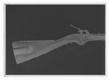 | Keywords: Hjullåslodbössa, hanspännslås, signerat Koch, 1600-talets andra hälft, möjligen Johan Koch - Livrustkammaren - 1204-negative.tif Åttsidig fyraräfflad pipa av stål skålade bommar Rektangulärt svansskruvblad <br/>Riktmedel Inlaxat ståndsikte med u-formig skärm inlaxat spolformigt korn av mässing <br/>Fästning Tre häften Pipan fäst med krysskur samt tre pipstift av stål <br/><br/>Hjullås hanspännslås med plant låsbleck av västeuropeisk typ med fasade kanter på bakspetsen snidad dekor i form av en odjursmask I övrigt graverad dekor blomrankor bakom hjulet en ekorre framför hjulet signatur Koch Hjulet saknas ursprungligen fäst med studel kl 6 Fängpanna med fasetterad framkant låg rak krutskärm fästskruven saknas Platt konturerad hane i form av drake graverad dekor svansen upprullad rund hanskruven avbruten huvudet saknas Lös underkäke käkskruv med litet klotformigt huvud på svarvat skaft Långt svagt svängt fingergrepp avslutat med ekollonformig kula Kraftig fyrsidig hanfjäder med s-formigt nedåtsvängd övre arm under hanfoten Hjulaxeln förenad med slagfjädern saknas med kedjelänk Spänning med kedja som lindas runt hanaxeln Avtryckarstångens fästskruv och fjäder saknas <br/>Fästning Två låsskruvar en i kolvlådan <br/>Avtryckare med upprullad ände Avtryckarbleck med rundad ände <br/><br/>Helstock av valnöt med kolv av fransk typ med kindstöd och kolvlåda Snidad dekor vid kindstödets framände lister runt beslagen blad på kolvlådelocket Beslag av stål bakplåt med fågelhuvudliknande konturerad ryggflik två skruvar Kolvlådelockets ände stålbeslagen S-formigt svängt välvt sidbleck med i mitten en oval plåt Tre svarvade rörkor slät konturerad spets Näsband med bakåtriktad spets S-formig vinkelböjd varbygel bygeldelen svagt profilerad med mittlist framtill avslutad med treklöver bakre armen slät välvd med rundad avslutning två skruvar original caption ca other date - 1650 1679 walnut e3 - eldvapen - stock material valnöt - steel e1247 - eldvapen - pipa lås riktmedel och beslag material stål - brass e4 - eldvapen - riktmedel material mässing g 4410 size mm 190 size mm 732 pipa size mm 1135 LRK Nils von Lantingshausen von Höpken Löjtnant Koch anv e2 - eldvapen - lås; Johan Koch Koch anv e2 - eldvapen - lås; Johan Koch place of origin original filename LN_B09170_012050 47845 inventory number LRK 11183 1204 CC0 Hjullåslodbössa hanspännslås signerat Koch 1600-talets andra hälft möjligen Johan Koch - Livrustkammaren - 1204 tif <gallery caption Different images of same object > File Hjullåslodbössa hanspännslås signerat Koch 1600-talets andra hälft möjligen Johan Koch - Livrustkammaren - 9764 tif File Hjullåslodbössa hanspännslås signerat Koch 1600-talets andra hälft möjligen Johan Koch - Livrustkammaren - 1206 tif </gallery> |