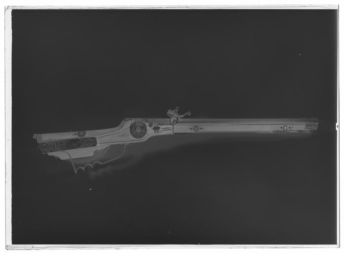 | Keywords: Hjullåslodbössa, slädbössa, Dresden ca 1640 - Livrustkammaren - 61890-negative.tif LSH artwork sv Åttsidig räfflad pipa av stål tolv räfflor skålade bommar På kammarens bakre del samt runt siktet och kornet punsad ornering i form av bågar och kors På kammaren dessutom inslaget H F Riktmedel Ståndsikte av stål stolpkorn av mässing Fästning Ett häfte Pipan fäst med krysskruv underifrån samt två pipstift av trä Hjullås med plant blånerat låsbleck av tysk typ blank kant Hjulkapsel studel och tryckknapp av förgylld mässing Kapseln och låsblecket med graverade tunna rankor Kort rak eldskärm fängpannelock med fingergrepp i form av en rak skärm fasetterad del avslutad med maskaron blomformig tryckknapp Hane med lös överkäke uppåtböjt fingergrepp graverat i form av en delfin ringformig ormliknande hanhals fasetterad hankropp Blånerad slagfjäder med urnliknande flik avslutad med blad Studel i form av änglahuvud På låsets insida är stången hjulstudeln och stoppfjädern blånerade och graverade Fästning och avtryckare Två låsskruvar Avtryckare med snälltryck Brun helstock av päronträ kolv av tysk typ med snidad volut på vingen Hela stocken är försedd med kantlister och inläggningar av graverat ben Bakplåt med stödkula av stål Runt kolvens bakre del på vingen ett stycke av kolvhälen samt runt svansskruvbladet bandformiga inläggningar På anslaget en betande hjort Kolvlådelock helt täckt med ben på mitten en springande hjort Låsskruvbrickor och pipstiftbrickor runda blomliknande med mindre punktinläggningar vid sidorna Överrörka och näsband med blad- och banddekor Varbygel av stål med tre fingerlägen främre skruven krysskruv Tillbehör Laddstock av trä l 147 mm skodd med ben och stål I kolvlådan ett pipstift original caption ca 1640 steel e1247 - eldvapen - pipa lås riktmedel och beslag material stål - brass e24 - eldvapen - lås och riktmedel material mässing - bone e78 - eldvapen - stockbeslag och stockdekor material ben - pearwood e3 - eldvapen - stock material päronträ g 2050 size mm 146 size mm 695 size mm 455 pipa LRK Kristina av Sverige Christina drottning av Sverige 1966 H F anv e1 - eldvapen - pipa; anonym pipsmed place of origin original filename LN_B16787_019667 41987 inventory number LRK 5330 61890 CC0 Hjullåslodbössa slädbössa Dresden ca 1640 - Livrustkammaren - 61890 tif |