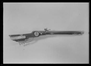 | Keywords: Hjullåslodbössa, slädbössa, Dresden ca 1640 - Livrustkammaren - 61890.tif LSH artwork sv Åttsidig räfflad pipa av stål tolv räfflor skålade bommar På kammarens bakre del samt runt siktet och kornet punsad ornering i form av bågar och kors På kammaren dessutom inslaget H F Riktmedel Ståndsikte av stål stolpkorn av mässing Fästning Ett häfte Pipan fäst med krysskruv underifrån samt två pipstift av trä Hjullås med plant blånerat låsbleck av tysk typ blank kant Hjulkapsel studel och tryckknapp av förgylld mässing Kapseln och låsblecket med graverade tunna rankor Kort rak eldskärm fängpannelock med fingergrepp i form av en rak skärm fasetterad del avslutad med maskaron blomformig tryckknapp Hane med lös överkäke uppåtböjt fingergrepp graverat i form av en delfin ringformig ormliknande hanhals fasetterad hankropp Blånerad slagfjäder med urnliknande flik avslutad med blad Studel i form av änglahuvud På låsets insida är stången hjulstudeln och stoppfjädern blånerade och graverade Fästning och avtryckare Två låsskruvar Avtryckare med snälltryck Brun helstock av päronträ kolv av tysk typ med snidad volut på vingen Hela stocken är försedd med kantlister och inläggningar av graverat ben Bakplåt med stödkula av stål Runt kolvens bakre del på vingen ett stycke av kolvhälen samt runt svansskruvbladet bandformiga inläggningar På anslaget en betande hjort Kolvlådelock helt täckt med ben på mitten en springande hjort Låsskruvbrickor och pipstiftbrickor runda blomliknande med mindre punktinläggningar vid sidorna Överrörka och näsband med blad- och banddekor Varbygel av stål med tre fingerlägen främre skruven krysskruv Tillbehör Laddstock av trä l 147 mm skodd med ben och stål I kolvlådan ett pipstift original caption ca 1640 steel e1247 - eldvapen - pipa lås riktmedel och beslag material stål - brass e24 - eldvapen - lås och riktmedel material mässing - bone e78 - eldvapen - stockbeslag och stockdekor material ben - pearwood e3 - eldvapen - stock material päronträ g 2050 size mm 146 size mm 695 size mm 455 pipa LRK Kristina av Sverige Christina drottning av Sverige 1966 H F anv e1 - eldvapen - pipa; anonym pipsmed place of origin original filename LN_B16787_019667 41987 inventory number LRK 5330 61890 CC0 Hjullåslodbössa slädbössa Dresden ca 1640 - Livrustkammaren - 61890-negative tif Muskets Media contributed by LSH dim-with multiple size templates Media contributed by LSH 2016-12 |