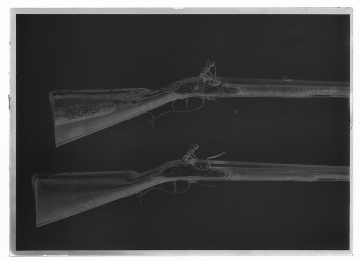 | Keywords: Hjullåspistol, puffert, Nordtyskland (Braunschweig?) ca 1560-1570 - Livrustkammaren - 51981-negative.tif Rund pipa med svag trumf och åttsidig kammare kort försänkt i vinkel böjt svansskruvblad dolt av kolvplåten Pipans ovansida helt täckt av etsad och delvis förgylld dekor ett förgyllt tvärband i båda ändar på pipan och däremellan rankdekor mot prickbakgrund På den kantiga delen en förgylld man helbild profil h barett med plym midjekort mantel pluderhosor värja På den runda delen en kvinna helbild profil v lång veckad kjol med tvärbårder överdel med långa hängande ärmar kort plagg över axlarna v hand vid midjan h hand lyft framför ansiktet hållande spegel runt föremål med hundliknande drag skaft Båda figurerna står i fält som framtill avslutas med trepassformig båge med krön i form av fransk lilja Pipans undersida endast grovfilad <br/>Fästning Två häften Pipan fäst med krysskruv samt två pipstift av stål <br/><br/>Hjullås med plant låsbleck med delvis fasade kanter Låsblecket täckt av etsad dekor med bladrankor mot prickbakgrund kantbård av omväxlande tre runda och ett avlångt blankt fält Utvändigt hjul täckt av en rombisk platta och därpå stödram i form av två från nederkanten utstickande från varandra vända etsade drakhuvuden förenade dels nertill dels genom båge med prickdekor ovanför hjulaxeln Drakarna och den rombiska plattan fästade med en skruv genom vardera drakhuvudet Kantig fängpanna på ytterkanten och bakkanten en plan skiva med svängd kant som tillsammans med fängpannas lock bildar en halvcirkel fängpannelocket saknas På skivans ovansida hakan av en grotesk mask jfr nr 17584 På låsbleckets kant därframför en etsad bladranka <br/>Hane med rak kantig kropp på framsidan en utskjutande platta med rundad kant framför käkskruven lös överkäke med antydan till fingergrepp käkskruv med litet fyrsidigt huvud På hanens utsida grövre rankdekor samt antydan till drakhuvud på käkarna Hanfjäder med framtill rundad utsida filade bladrankor dubbelt kraftigt fjäderlöv med dekor som på hanen ena bladet nedanför hjulet det andra uppåtriktat <br/>Låset invändigt svärtat Stor konturerad täckplatta från avtryckare till hjulaxel odjurshuvud framtill <br/>Säkring På låsbleckets bakre del en virvelsäkring L-formig bygel med lång profilerad främre arm avslutad med stort fjäderlöv bakom bygeln ett löv som täcker hela låsbleckets plana del och tvär avslutas vid tungan som skjuts in under kolvplåten Säkring med rinformigt platt grepp profilerad fjäder med dubbelt fjäderlöv som hanfjäderns Fästning Två låsskruvar den bakre samtidigt fästskruv för bältehaken <br/>Avtryckare Rak avtryckare fäst med skruv i kolvplåten <br/><br/>Helstock av stål med i vinkel böjd kolv avslutad med kolvkula kolvkulan delad i två halvor förenade med gångjärn på undersidan fjädrande spärr som nås genom hål i kolvkulan Kolvhalsen rundad framtill en ring med pärlstavsdekor Låsdelen av kolven samt framstocken kantiga sluten laddstocksränna framstocken därframför rundad <br/>Heltäckande etsad dekor i fält åtskilda av blanka linjer fältens botten prickad därpå rankmönster På kolvkulans yttre del bladrankor amt ovanför mittknappen en tom renässanssköld sköldhållare två lejon På kolvkulans fasta del dekor i form av stora flikiga framåtriktade blad På kolvhalsens runda del fem rektangulära fält på ovansidan två med en naken man i det ena och en naken kvinna i det andra halvt vända mot varandra draperingar över skötena På sidorna ytterligare en naken kvinna vänd mot mannen samt på den andra sidan en man i antik rustning och med kroksabel På undersidan en man likaså i antik rustning men med sköld stödd mot marken dessa två är vända mot varandra På kolvryggen därframför fram till pipan ett stort fält med en man i helfigur profil v antik rustning med lejonmaskaron på axeln pluderhosor på huvudet kaskett med plym v hand vid midjan h hand lyft hållande yxa Hela anslagssidan av stocken täcks av ett sotrt fält med bladrankor samt mellan låsskruvarna en ryttare vänd framåt hög hatt med plym dräkt med pluderhosor bakom ryttaren en hund framför honom en hare en hund och en hare På kolvens undersida ett fät runt avtryckaren samt ett fält därframför med bladrankor samt två fåglar d en främre en sittande papegoja På laddstocksrännan längsgående dekor i form av en bladranka hund och hare Som överrörka och näsband ett tvärband med förgylld rankdekor I övrigt har samtliga större figurmotiv rester av förgyllning <br/><br/>Tillbehör <br/>Laddstock av stål l 318 mm original caption ca other date - 1560 1570 steel e1279 - eldvapen - pipa lås stockbeslag och laddstock material stål g 2220 size mm 340 pipa size mm 544 LRK Erik XIV av Sverige Gustav II Adolf av Sverige Tre Konungar på Åbo slott 1993 place of origin original filename LN_B03306_006186 54178 inventory number LRK 17583 51981 CC0 Hjullåspistol puffert Nordtyskland Braunschweig ca 1560-1570 - Livrustkammaren - 51981 tif <gallery caption Different images of same object > File Hjullåspistol puffert Nordtyskland Braunschweig ca 1560-1570 - Livrustkammaren - 43271 tif File Hjullåspistol puffert Nordtyskland Braunschweig ca 1560-1570 - Livrustkammaren - 26246 tif </gallery> |