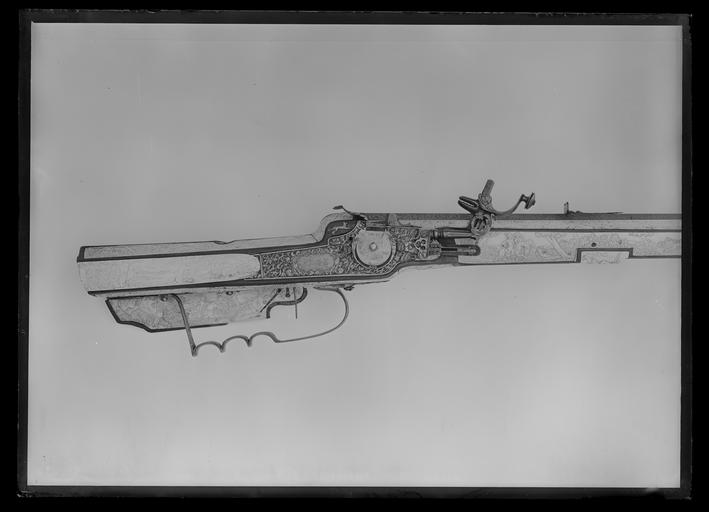 | Keywords: Hjullåsstudsare, Westphalen ca 1660 - Livrustkammaren - 43315.tif LSH artwork sv Åttsidig sjuräfflad pipa bombredd 2 8 mm Rektangulärt svansskruvblad På kammaren en sköldformig stämpel med hand och därovanför tre otydliga bokstäver G H N LRK vägl 1921 155 Dekor i form av graverade blomrankor på kammaren runt siktet och bakom kornet På kammaren dessutom ett fält med landskap med en hjort och två hundar Riktmedel Ståndsikte av stål med bred u-formig skärm Spolformigt korn av mässing båda inlaxade två laxningar för siktet Fästning Pipan fäst med krysskruv underifrån främre varbygelskruven samt tre pipstift av trä Hjullås av tysk typ plant låsbleck l 205 mm Dekor i form av graverade blomrankor i låg relief mot mörkskrafferad bakgrund Bakom hjulet ett ovalt fält med landskap med en kavalleristrid Utanpåliggande hjul fäst med halvcirkelformig uppåt breddad ring fäst med två skruvar kl 3 och 9 Svängd eldskärm avslutad med horisontell hjärtformig spets Fängpannelock med rörlig arm lockets framkant fasad och försedd med graverad dekor svängt rundat fingergrepp framtill avslutat med ett treflikigt blad Hane med fyrsidig kropp med rundad räfflad utsida ringformig hanhals med stor skärm lös överkäke Hals och käkar graverade som fågelhuvuden Uppåtböjt fingergrepp avslutat med en rund platt med spiralgravering Käkskruv med fyrsidigt huvud upptill koniskt med kulformig avslutning Hanfjäder med fasade kanter konturerad studel med glasögonformig genombrytning Avtryckarstången och fängpannelockets stoppfjädrar blånerade Fästning Två låsskruvar Avtryckare med konturerat och profilerat snälltryck Helstock av rödmålat trä rödbok nästan helt täckt med elfenbensplattor med snidad dekor Kolv av tysk typ med kolvlåda och vinge framtill avslutad med volut Den snidade dekoren föreställer landskap med jaktscener se Hellner Kolvlådelock av elfenben Bakplåt av elfenben med en satyr Kolvkula av stål Spetsrörka av elfenben med maskaron Bred varbygel av stål med tre fingerlägen korta genombrutna armar på bygeln graverad rankdekor samt ovalt fält med landskap med jägare hund och hjort Tillbehör Laddstock av rödmålat trä l 781 mm i ena änden ett invändigt gängat stålrör l 120 mm I den andra en benskoning l 42 Plattan kommer fram ur munnen på ett snidat fiskhuvud Gåva till Karl XI från landshövdingen friherre Augustin Leijonsköld 1634-1682 original caption ca 1660 steel e1247 - eldvapen - pipa lås riktmedel och beslag material stål - brass e4 - eldvapen - riktmedel material mässing - ivory e78 - eldvapen - stockbeslag och stockdekor material elfenben - beech e3 - eldvapen - stock material rödbok g 4280 size mm 774 pipa size mm 1068 LRK Karl XI av Sverige Augustin Leijonsköld basutställning Gallica 1945 Livrustkammarens basutställning 1978 Krigets prakt 2003-2004 place of origin DE Westphalia original filename LN_B02245_005125 39530 inventory number LRK 2920 43315 CC0 Hjullåsstudsare Westphalen ca 1660 - Livrustkammaren - 43315-negative tif <gallery caption Different images of same object > File Hjullåsstudsare - Livrustkammaren - 95341 tif File Hjullåsstudsare Westphalen ca 1660 - Livrustkammaren - 10506 tif File Hjullåsstudsare Westphalen ca 1660 - Livrustkammaren - 27630 tif File Hjullåsstudsare Westphalen ca 1660 - Livrustkammaren - 19068 tif File Hjullåsstudsare Westphalen ca 1660 - Livrustkammaren - 10775 tif File Hjullåsstudsare Westphalen ca 1660 - Livrustkammaren - 78992 tif File Hjullåsstudsare Westphalen ca 1660 - Livrustkammaren - 44749 tif File Hjullåsstudsare Westphalen ca 1660 - Livrustkammaren - 60420 tif File Hjullåsstudsare Westphalen ca 1660 - Livrustkammaren - 1946 tif File Hjullåsstudsare Westphalen ca 1660 - Livrustkammaren - 26180 tif File Hjullåsstudsare Westphalen ca 1660 - Livrustkammaren - 61870 tif File Hjullåsstudsare - Livrustkammaren - 51368 tif File Hjullåsstudsare Westphalen ca 1660 - Livrustkammaren - 53310 tif File Hjullåsstudsare Westphalen ca 1660 - Livrustkammaren - 1945 tif File Hjullåsstudsare Westphalen ca 1660 - Livrustkammaren - 36191 tif File Hjullåsstudsare Westphalen ca 1660 - Livrustkammaren - 78991 tif File Hjullåsstudsare Westphalen ca 1660 - Livrustkammaren - 78990 tif File Hjullåsstudsare Westphalen ca 1660 - Livrustkammaren - 60464 tif File Hjullåsstudsare Westphalen ca 1660 - Livrustkammaren - 77541 tif File Hjullåsstudsare Westphalen ca 1660 - Livrustkammaren - 70431 tif File Hjullåsstudsare Westphalen ca 1660 - Livrustkammaren - 71153 tif File Hjullåsstudsare Westphalen ca 1660 - Livrustkammaren - 61871 tif File Hjullåsstudsare Westphalen ca 1660 - Livrustkammaren - 60459 tif File Hjullåsstudsare Karl XI - Livrustkammaren - 31010 tif File Hjullåsstudsare Westphalen ca 1660 - Livrustkammaren - 53309 tif File Hjullåsstudsare Westphalen ca 1660 - Livrustkammaren - 70432 tif File Hjullåsstudsare Westphalen ca 1660 - Livrustkammaren - 70433 tif </gallery> Muskets Media contributed by LSH dim-with multiple size templates Media contributed by LSH 2016-12 |