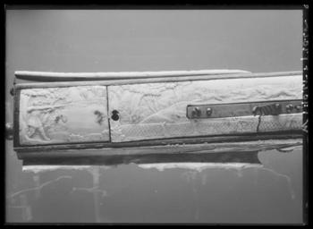 | Keywords: Hjullåsstudsare, Westphalen cirka 1660 - Livrustkammaren - 53308.tif LSH artwork sv Åttsidig sjuräfflad pipa bombredd 2 8 mm Rektangulärt svansskruvblad På kammaren en sköldformig stämpel med hand och därovanför tre otydliga bokstäver G H N LRK vägl 1921 155 Dekor i form av graverade blomrankor på kammaren runt siktet och bakom kornet På kammaren dessutom ett fält med landskap med en man och fyra springande hundar Riktmedel Ståndsikte av stål med bred u-formig skärm Spolformigt korn av mässing båda inlaxade Fästning Pipan fäst med krysskruv underifrån främre varbygelskruven samt tre pipstift av trä Hjullås av tysk typ plant låsbleck l 205 mm Dekor i form av graverade blomrankor i låg relief mot mörkskrafferad bakgrund Bakom hjulet ett ovalt fält med landskap däri ryttare som förföljer en springande hjort två hundar Utanpåliggande hjul fäst med halvcirkelformig uppåt breddad ring fäst med två skruvar kl 3 och 9 Svängd eldskärm avslutad med horisontell hjärtformig spets Fängpannelock med rörlig arm lockets framkant fasad och försedd med graverad dekor svängt rundat fingergrepp framtill avslutat med ett treflikigt blad Hane med fyrsidig kropp med rundad räfflad utsida ringformig hanhals med stor skärm lös överkäke Hals och käkar graverade som fågelhuvuden Uppåtböjt fingergrepp avslutat med en rund platt med spiralgravering Käkskruv med fyrsidigt huvud upptill koniskt med kulformig avslutning Hanfjäder med fasade kanter konturerad studel med glasögonformig genombrytning Avtryckarstången och fängpannelockets stoppfjädrar blånerade Fästning Två låsskruvar Avtryckare med konturerat och profilerat snälltryck Helstock av rödmålat trä rödbok nästan helt täckt med elfenbensplattor med snidad dekor Kolv av tysk typ med kolvlåda och vinge framtill avslutad med volut Den snidade dekoren föreställer landskap med jaktscener se Hellner Kolvlådelock av elfenben Kolvkula av stål Spetsrörka av elfenben med maskaron Topprörka och näsband samt bakplåten saknas Bred varbygel av stål med tre fingerlägen korta genombrutna armar på bygeln graverad rankdekor samt ovalt fält med landskap med jägare hund och hjort Tillbehör Laddstock av rödmålat trä l 742 mm i ena änden ett invändigt gängat stålrör l 119 mm Gåva till Karl XI från landshövdingen friherre Augustin Leijonsköld 1634-1682 original caption ca 1660 ivory e8 - eldvapen - stockdekor material elfenben - steel e1247 - eldvapen - pipa lås riktmedel och beslag material stål - brass e4 - eldvapen - riktmedel material mässing - beech e3 - eldvapen - stock material rödbok size mm 775 pipa size mm 1068 g 4430 LRK Karl XI av Sverige Augustin Leijonsköld Jakt 1973 Läckö slott Tre Karlar 1984-1985 Trofast - hov och tass i kunglig tjänst 2010-2011 Livrustkammaren Trogna vänner - Kungliga hästar och hundar 2011-2012 Museiverket/Finlands nationalmuseum basutställning G H N hand 1921 155 anv e1 - eldvapen - pipa; anonym pipsmed place of origin original filename LN_B16576_019456 39529 inventory number LRK 2919 53308 CC0 Hjullåsstudsare Westphalen cirka 1660 - Livrustkammaren - 53308-negative tif <gallery caption Different images of same object > File Bössa elfenben - Livrustkammaren - 86497 tif File Hjullåsstudsare Westphalen cirka 1660 - Livrustkammaren - 19075 tif File Hjullåsstudsare Westphalen cirka 1660 - Livrustkammaren - 19100 tif File Hjullåsstudsare Westphalen cirka 1660 - Livrustkammaren - 36190 tif File Hjullåsstudsare Westphalen cirka 1660 - Livrustkammaren - 10505 tif File Hjullåsstudsare - Livrustkammaren - 95342 tif File Hjullåsstudsare Westphalen cirka 1660 - Livrustkammaren - 1978 tif File Hjullåsstudsare Westphalen cirka 1660 - Livrustkammaren - 19067 tif File Hjullåsstudsare Westphalen cirka 1660 - Livrustkammaren - 44747 tif File Hjullåsstudsare Westphalen cirka 1660 - Livrustkammaren - 61869 tif File Hjullåsstudsare Westphalen cirka 1660 - Livrustkammaren - 44748 tif File Hjullåsstudsare Westphalen cirka 1660 - Livrustkammaren - 10538 tif File Hjullåsstudsare Westphalen cirka 1660 - Livrustkammaren - 27629 tif File Bössa elfenben - Livrustkammaren - 86498 tif </gallery> Muskets Media contributed by LSH dim-with multiple size templates Media contributed by LSH 2016-12 |