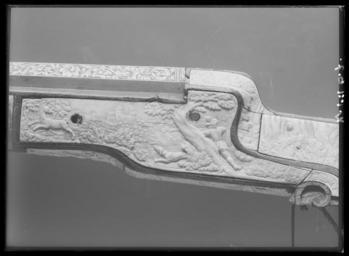 | Keywords: Hjullåsstudsare, Westphalen cirka 1660 - Livrustkammaren - 10505.tif LSH artwork sv Åttsidig sjuräfflad pipa bombredd 2 8 mm Rektangulärt svansskruvblad På kammaren en sköldformig stämpel med hand och därovanför tre otydliga bokstäver G H N LRK vägl 1921 155 Dekor i form av graverade blomrankor på kammaren runt siktet och bakom kornet På kammaren dessutom ett fält med landskap med en man och fyra springande hundar Riktmedel Ståndsikte av stål med bred u-formig skärm Spolformigt korn av mässing båda inlaxade Fästning Pipan fäst med krysskruv underifrån främre varbygelskruven samt tre pipstift av trä Hjullås av tysk typ plant låsbleck l 205 mm Dekor i form av graverade blomrankor i låg relief mot mörkskrafferad bakgrund Bakom hjulet ett ovalt fält med landskap däri ryttare som förföljer en springande hjort två hundar Utanpåliggande hjul fäst med halvcirkelformig uppåt breddad ring fäst med två skruvar kl 3 och 9 Svängd eldskärm avslutad med horisontell hjärtformig spets Fängpannelock med rörlig arm lockets framkant fasad och försedd med graverad dekor svängt rundat fingergrepp framtill avslutat med ett treflikigt blad Hane med fyrsidig kropp med rundad räfflad utsida ringformig hanhals med stor skärm lös överkäke Hals och käkar graverade som fågelhuvuden Uppåtböjt fingergrepp avslutat med en rund platt med spiralgravering Käkskruv med fyrsidigt huvud upptill koniskt med kulformig avslutning Hanfjäder med fasade kanter konturerad studel med glasögonformig genombrytning Avtryckarstången och fängpannelockets stoppfjädrar blånerade Fästning Två låsskruvar Avtryckare med konturerat och profilerat snälltryck Helstock av rödmålat trä rödbok nästan helt täckt med elfenbensplattor med snidad dekor Kolv av tysk typ med kolvlåda och vinge framtill avslutad med volut Den snidade dekoren föreställer landskap med jaktscener se Hellner Kolvlådelock av elfenben Kolvkula av stål Spetsrörka av elfenben med maskaron Topprörka och näsband samt bakplåten saknas Bred varbygel av stål med tre fingerlägen korta genombrutna armar på bygeln graverad rankdekor samt ovalt fält med landskap med jägare hund och hjort Tillbehör Laddstock av rödmålat trä l 742 mm i ena änden ett invändigt gängat stålrör l 119 mm Gåva till Karl XI från landshövdingen friherre Augustin Leijonsköld 1634-1682 original caption ca 1660 ivory e8 - eldvapen - stockdekor material elfenben - steel e1247 - eldvapen - pipa lås riktmedel och beslag material stål - brass e4 - eldvapen - riktmedel material mässing - beech e3 - eldvapen - stock material rödbok size mm 775 pipa size mm 1068 g 4430 LRK Karl XI av Sverige Augustin Leijonsköld Jakt 1973 Läckö slott Tre Karlar 1984-1985 Trofast - hov och tass i kunglig tjänst 2010-2011 Livrustkammaren Trogna vänner - Kungliga hästar och hundar 2011-2012 Museiverket/Finlands nationalmuseum basutställning G H N hand 1921 155 anv e1 - eldvapen - pipa; anonym pipsmed place of origin original filename LN_B16581_019461 39529 inventory number LRK 2919 10505 CC0 Hjullåsstudsare Westphalen cirka 1660 - Livrustkammaren - 10505-negative tif <gallery caption Different images of same object > File Bössa elfenben - Livrustkammaren - 86497 tif File Hjullåsstudsare Westphalen cirka 1660 - Livrustkammaren - 19075 tif File Hjullåsstudsare Westphalen cirka 1660 - Livrustkammaren - 19100 tif File Hjullåsstudsare Westphalen cirka 1660 - Livrustkammaren - 36190 tif File Hjullåsstudsare - Livrustkammaren - 95342 tif File Hjullåsstudsare Westphalen cirka 1660 - Livrustkammaren - 53308 tif File Hjullåsstudsare Westphalen cirka 1660 - Livrustkammaren - 1978 tif File Hjullåsstudsare Westphalen cirka 1660 - Livrustkammaren - 19067 tif File Hjullåsstudsare Westphalen cirka 1660 - Livrustkammaren - 44747 tif File Hjullåsstudsare Westphalen cirka 1660 - Livrustkammaren - 61869 tif File Hjullåsstudsare Westphalen cirka 1660 - Livrustkammaren - 44748 tif File Hjullåsstudsare Westphalen cirka 1660 - Livrustkammaren - 10538 tif File Hjullåsstudsare Westphalen cirka 1660 - Livrustkammaren - 27629 tif File Bössa elfenben - Livrustkammaren - 86498 tif </gallery> Muskets Media contributed by LSH dim-with multiple size templates Media contributed by LSH 2016-12 |
