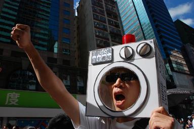 | Keywords: Hk protest against implementation of national education 5.jpg 視覺 術家黃 才戴上自製的 洗衣機頭盔 諷刺 民教育的洗腦功能 http //www voacantonese com/content/hk-protest-against-implementation-of-national-education-20120729/1448997 html 2012-07-30 Creator Iris Tong VOA 2012 protests against Moral and National Education Brainwashing Anti-communism in Hong Kong Washing machines in art Object costumes | ||||