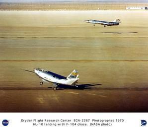 | Keywords: HL-10 landing on lakebed with F-104 chase aircraft DVIDS717484.jpg en In this photo the HL-10 has touched down on its main landing gear while the pilot was holding the nose up to slow the vehicle The F-104 in the background was used as a chase plane Its pilot would give the HL-10's pilot calls on his altitude above the lakebed as well as warnings about any problems The NASA F-104s were also used for lifting-body training With the landing gear extended and flaps lowered the F-104 could simulate the steep high-speed descent and landing of a lifting body The HL-10 was one of five heavyweight lifting-body designs flown at NASA's Flight Research Center FRC--later Dryden Flight Research Center Edwards California from July 1966 to November 1975 to study and validate the concept of safely maneuvering and landing a low lift-over-drag vehicle designed for reentry from space Northrop Corporation built the HL-10 and M2-F2 the first two of the fleet of heavy lifting bodies flown by the NASA Flight Research Center The contract for construction of the HL-10 and the M2-F2 was 1 8 million HL stands for horizontal landing and 10 refers to the tenth design studied by engineers at NASA's Langley Research Center Hampton Va After delivery to NASA in January 1966 the HL-10 made its first flight on Dec 22 1966 with research pilot Bruce Peterson in the cockpit Although an XLR-11 rocket engine was installed in the vehicle the first 11 drop flights from the B-52 launch aircraft were powerless glide flights to assess handling qualities stability and control In the end the HL-10 was judged to be the best handling of the three original heavy-weight lifting bodies M2-F2/F3 HL-10 X-24A The HL-10 was flown 37 times during the lifting body research program and logged the highest altitude and fastest speed in the Lifting Body program On Feb 18 1970 Air Force test pilot Peter Hoag piloted the HL-10 to Mach 1 86 1 228 mph Nine days later NASA pilot Bill Dana flew the vehicle to 90 030 feet which became the highest altitude reached in the program Some new and different lessons were learned through the successful flight testing of the HL-10 These lessons when combined with information from it's sister ship the M2-F2/F3 provided an excellent starting point for designers of future entry vehicles including the Space Shuttle NASA Identifier NIX_ECN-2367 2009-12-10 Glenn Research Center https //www dvidshub net/image/717484 717484 2012-10-10 18 20 WASHINGTON DC US PD-USGov Northrop HL-10 Images from DoD uploaded by Fæ |
