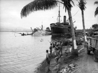 | Keywords: HMAS Anshun wreck3.jpeg en The steamship Anshun lying on her side in Milne Bay Papua New Guinea where she was sunk by Japanese warships http //cas awm gov au/item/026666 Australian War Memorial Copyright expired - public domain 1942-09 Royal Australian Navy ships PD-Australia |