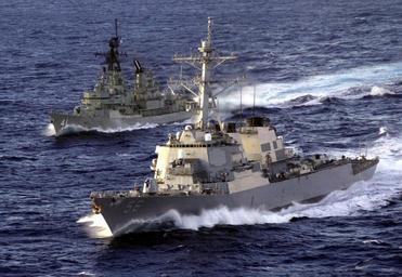 | Keywords: US Navy 010519-N-4790M-005 U.S. and Australian Ships at Sea.jpg en 010519-N-4790M-005 Shoalwater Bay Queensland Australia May 19 2001 The Australian destroyer HMAS Brisbane DDG 41 top and the U S Navy destroyer USS John S McCain DDG 56 center cruise side by side in Australian waters during Operation Exercise Tandem Thrust 2001 Tandem Thrust is a combined U S and Australian military training exercise being held in the Shoalwater Bay Training area off the coast of Australia More than 27 000 Soldiers Sailors Airman and Marines are participating with Canadian units taking part as opposing forces U S Navy Photo by Photographer s Mate 2nd Class Andrew Meyers RELEASED 2001-05-19 010519-N-4790M-005 Navy http //www navy mil/view_image asp id 690 U S Navy Photo by Photographer s Mate 2nd Class Andrew Meyers PD-USGov-Military-Navy 2001 photographs 19 May HMAS Brisbane D 41 USS John S McCain DDG-56 Tandem Thrust 2001 |
