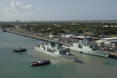| Keywords: HMCS Vancouver (FFH 331) 2.jpg <s></s>Halifax-class frigate HMCS Vancouver FFH 331 and Iroquois-class destroyer HMCS Algonquin DDH 283 Tugboats assist HMCS Vancouver FFH 331 in departing from Pearl Harbor to participate in exercise Rim of the Pacific RIMPAC 2006 http //www navy mil/view_image asp id 36618 PD-USGov-Military-Navy 060706-N-8629M-139 Pearl Harbor July 6 2006 “ Tugboats assist HMCS Vancouver FFH 331 in departing from Pearl Harbor to participate in exercise Rim of the Pacific RIMPAC 2006 Eight nations are participating in RIMPAC the world's largest biennial maritime exercise Conducted in the waters off Hawaii RIMPAC brings together military forces from Australia Canada Chile Peru Japan the Republic of Korea the United Kingdom and the United States U S Navy photo by Mass Communication Specialist 2nd Class Rebecca J Moat RELEASED HMCS Vancouver FFH 331 HMCS Algonquin DDG 283 ship 1973 RIMPAC 2006 Naval ships in motion Tiger 1 tugboat 2002 Tiger 4 tugboat 2003 |