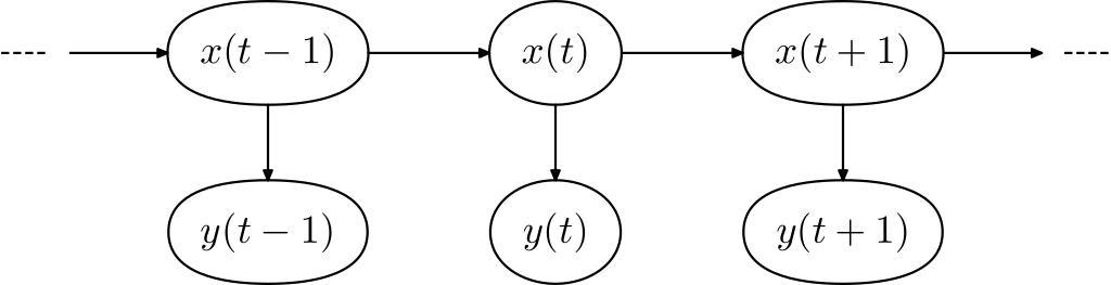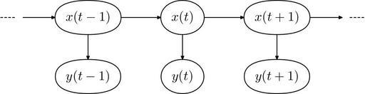 | Keywords: Hmm temporal bayesian net.svg Hidden Markov model represented as a Bayesian net with time slices Own work by uploader layout copied from bitmap Image Hmm_temporal_bayesian_net png Qef 2007-07-10 Equivalent bitmap image Image Hmm_temporal_bayesian_net png Source code metapost <pre> prologues 3; input boxes beginfig 1 ; arrowlenx 16mm; arrowleny 10mm; dasheslen 6mm; dashesgap 3mm; textscale 1 5; pickup pencircle scaled 1pt; circleit xa btex x t-1 etex scaled textscale ; circleit xb btex x t etex scaled textscale ; circleit xc btex x t+1 etex scaled textscale ; circleit ya btex y t-1 etex scaled textscale ; circleit yb btex y t etex scaled textscale ; circleit yc btex y t+1 etex scaled textscale ; xa dx xb dx xc dx ya dx yb dx yc dx defaultdx 4; xa dy xb dy xc dy ya dy yb dy yc dy defaultdy 4; xpart xa w dasheslen + arrowlenx; ypart ya s ypart yb s ypart yc s 0; xb w xa e + arrowlenx 0 ; xc w xb e + arrowlenx 0 ; xa s ya n + 0 arrowleny ; xpart xb s xpart yb n; xpart xc s xpart yc n; drawboxed xa xb xc ya yb yc ; z1 xa w - arrowlenx 0 ; drawarrow xa e--xb w; drawarrow xb e--xc w; z2 xc e + arrowlenx 0 ; drawarrow xa s--ya n; drawarrow xb s--yb n; drawarrow xc s--yc n; linecap butt; drawarrow z1 + dashesgap 0 --xa w; drawarrow xc e-- z2 - dashesgap 0 ; draw z1 - dasheslen 0 --z1 dashed evenly; draw z2-- z2 + dasheslen 0 dashed evenly; endfig; end </pre> The following commands were used to compile this into an SVG file <pre> mpost fig mp ps2pdf -dEPSCrop fig 1 fig pdf pstoedit -page 1 -dt -xscale 2 -yscale 2 -f sk fig pdf fig sk inkscape -z --vacuum-defs -f fig sk -l fig svg </pre> Qef Hidden Markov Model |