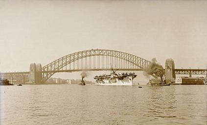 | Keywords: archives state records nsw staterecordsnsw newsouthwales blackandwhite sydney sydney harbour bridge sydneyharbourbridge harbour ships tugboats arbiter aircraft carrier aircraftcarrier royal navy royalnavy 1945 wwii world war ii worldwarii monochrome black and white HMS 'Arbiter', with two Fenwick steam tugs Dated: later than 01/01/1940 Digital ID: 9856_a017_A017000184 Rights: www.records.nsw.gov.au/about-us/rights-and-permissions We'd love to hear from you if you use our photos. Many other photos in our collection are available to view and browse on our website using Photo Investigator. HMS 'Arbiter', with two Fenwick steam tugs Dated: later than 01/01/1940 Digital ID: 9856_a017_A017000184 Rights: www.records.nsw.gov.au/about-us/rights-and-permissions We'd love to hear from you if you use our photos. Many other photos in our collection are available to view and browse on our website using Photo Investigator. |