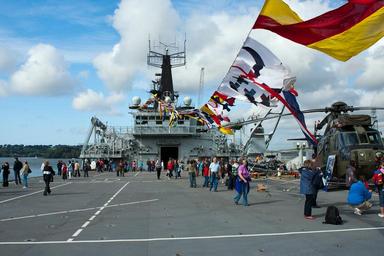 Keywords: hms bulwark amphibious dock royal navy open day signal flags helicopter deck visitors devonport plymouth