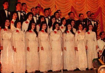 Keywords: HoangThiThoProgram.jpg en Hoang Thi Tho's choir performing a piece for his program The-gioi Tu-do USIA 1961 PD-USGov-USIA PD-USGov THVN9