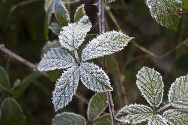 Keywords: hoarfrost leaves blackberry cold frost frosty frozen freeze