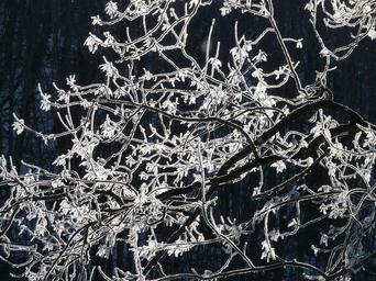 Keywords: hoarfrost tree road branch frost cold winter frozen back light