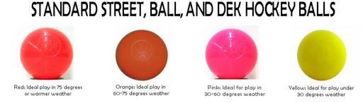| Keywords: Hockey Balls By Color And Temperature.jpg en This is a standard hockey ball that is used to play street hockey dek hockey and ball hockey It is manufactured by the Mylec Corporation The ball comes in slightly different materials which are marked by their color The colors represent the hardness of the material This is done to allow for playing dek hockey in different temperatures and ensuring the ball remains consistent in terms of its bounce feel and aerodynamics when shot The colors are Red Ideal play in 75 degrees or warmer weather Orange Ideal play in 60-75 degrees weather Pink Ideal for play in 30-60 degrees weather Yellow Ideal for play under 30 degrees weather own Solomanium 2011-04-06 Cc-zero Street hockey |
