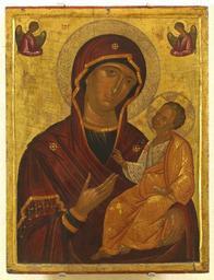 Keywords: Hodegitria (16th c., Cretan school).jpg Παναγία Οδηγήτρια ρώτες δεκαετίες του 16ου αιώνα 55 5x73εκ άγνωστος Κρητικός ζωγράφος ήτη Ρ Θ εο Υ Στην εικόνα αριστάνεται η Παναγία σε ροτομή ου κρατεί τον Χριστό στο αριστερό της χέρι και έχει το δεξί χέρι μ ροστά στο στήθος Ο Χριστός στρέφει το βλέμμα ρος αυτήν ευλογεί και κρατεί κλειστό ειλητό Ε άνω στις γωνίες εικονίζονται οι αρχάγγελοι ιχαήλ και Γαβριήλ ημίσωμοι και με καλυμμένα τα χέρια σε στάση ροσκύνησης http //eib xanthi ilsp gr/gr/icons asp cursort iconTitle selectFieldValue vpage 2 16th c unidentified Cretan painter PD-old Files uploaded by Shakko from various sources 16th-century icons of Greece Cretan School Marian icons in Greece Hodegetria