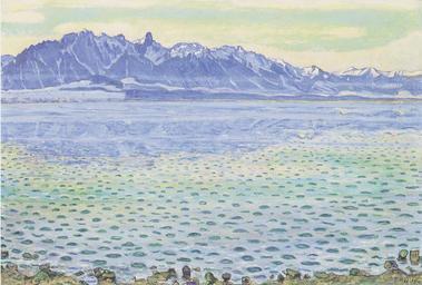 | Keywords: Hodler - Thunersee mit Stockhornkette -1904.jpg Artwork Creator Ferdinand Hodler 1904 oil canvas 71 x 105 cm private collection accession number object history credit line repro from artbook PD-old Landscape paintings by Ferdinand Hodler Paintings of Lake Thun Stockhorn 1900s landscape paintings 1904 paintings |