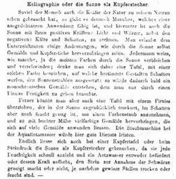 | Keywords: Hoffmeister (Roth 1863).jpg Extract from an article by Roth on the 'Hoffmeister Process' Photographisches Archiv 1863 Reproduction of a text published in 'Allgemeiner Anzeiger der Deutschen' Pierre Harmant extract cited Anno Lucis 1839 http //www marillier nom fr/collodions/PGH/anno_lucisEN2 html 2 Teil Camera Luzern Nr 8 August 1960 Review Extract-pic K de Roth Hat ein deutscher Pfarrer die Photographie erfunden Photographisches Archiv 1863 S 53-57 Orig Work Hoffmeister Die Heliographie oder die Sonne als Kupferstecher Allgemeiner Anzeiger und Nationalzeitung der Deutschen 7 November 1833 Nr 304 S 3816 1863 Philipp Hoffmeister 1804-1874 PD-old Philipp Hoffmeister |