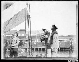 | Keywords: hood collection hoodcollection samuel j hood collection samueljhoodcollection merchant vessel merchantvessel foreign vessel foreignvessel maritime activity maritimeactivity barque sydney harbour sydneyharbour harbour scenes harbourscenes magdalene vinnen magdalenevinnen woolloomooloo ship's crew shipscrew sailors german flag germanflag flag republican flag republicanflag nazi imperial flag imperialflag asmis rudolf asmis rudolfasmis dr rudolf asmis drrudolfasmis german consul-general germanconsulgeneral blackandwhite monochrome photo border black and white In January 1933, as the Nazi Party assumed power in Germany, the German Republican flag, the Bundesflagge und Handelsflagge, with its black-red-gold tricolour was discarded as the national flag. On 12 March, the German government established two legal national flags, the black-white-red Imperial tricolour flag and the swastika flag of the Nazi Party. This photograph marks this historic moment. It was taken on the morning of the 23 March, after the German Consul-General Dr Rudolf Asmis received instruction from the German government to hoist the Imperial flag in place of the old Republican flag. On 24 March, the 'Sydney Morning Herald' reported on the event, noting that the Republican flag had been taken down at sunset on 22 March and the Imperial flag was then hoisted 'in the presence of the entire ship's company' ['SMH', 24 March 1933, p 9]. This photo is part of the Australian National Maritime Museum’s Samuel J. Hood Studio collection. Sam Hood (1872-1953) was a Sydney photographer with a passion for ships. His 60-year career spanned the romantic age of sail and two world wars. The photos in the collection were taken mainly in Sydney and Newcastle during the first half of the 20th century. The ANMM undertakes research and accepts public comments that enhance the information we hold about images in our collection. This record has been updated accordingly. Photographer: Samuel J. Hood Studio Collection Object no. 00035604 In January 1933, as the Nazi Party assumed power in Germany, the German Republican flag, the Bundesflagge und Handelsflagge, with its black-red-gold tricolour was discarded as the national flag. On 12 March, the German government established two legal national flags, the black-white-red Imperial tricolour flag and the swastika flag of the Nazi Party. This photograph marks this historic moment. It was taken on the morning of the 23 March, after the German Consul-General Dr Rudolf Asmis received instruction from the German government to hoist the Imperial flag in place of the old Republican flag. On 24 March, the 'Sydney Morning Herald' reported on the event, noting that the Republican flag had been taken down at sunset on 22 March and the Imperial flag was then hoisted 'in the presence of the entire ship's company' ['SMH', 24 March 1933, p 9]. This photo is part of the Australian National Maritime Museum’s Samuel J. Hood Studio collection. Sam Hood (1872-1953) was a Sydney photographer with a passion for ships. His 60-year career spanned the romantic age of sail and two world wars. The photos in the collection were taken mainly in Sydney and Newcastle during the first half of the 20th century. The ANMM undertakes research and accepts public comments that enhance the information we hold about images in our collection. This record has been updated accordingly. Photographer: Samuel J. Hood Studio Collection Object no. 00035604 |