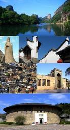 | Keywords: Hokkian.JPG en Images of Fujian from top left to right Wuyi Mountains in Northwest Fujian the Taoist Statue of Mazu in Meizhou Island a gate left and gable right of traditional Foochow architecture in the Three Lanes and Seven Alleys in Fuzhou Gulangyu Island in Xiamen Amoy the ancient mosque of Quanzhou Zayton Zhencheng Lou of Fujian Tulou dwellings in Southwest Fujian zh 福建標志 景物,從上至下 從左至右 次為:武夷山 (閩西北),莆田湄洲島媽祖雕像,福州三 七巷傳統建筑的大 (左)和封火墻(右),廈 鼓浪嶼建筑,泉州城古清凈寺,福建 樓之振成樓 File Wuyi Mountains Sea of clouds 4 jpg File Mazu jpg File Sang-huong-chek-haeng jpg File Gulangyu jpg File Zayton Mosque jpg File Zhenchenglou JPG 过 Jet Xu GnuDoyng Jakob Montrasio Puccaso User Gisling User LuHungnguong 10/09/2009 cc-by-2 5-cn CC-BY-SA cc-zero cc-by-2 5 Fujian |