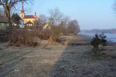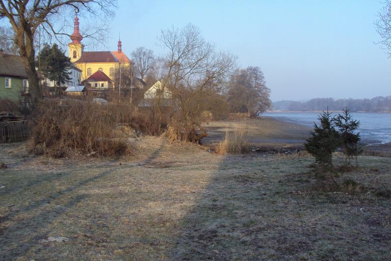Keywords: Holanský rybník 1.jpg cs Přes zimu vypuštěný Holanský rybník vpravo Holany s kostelem sv Maří Magdaleny own Zákupák 2011-03-30 Holany Holanský rybník