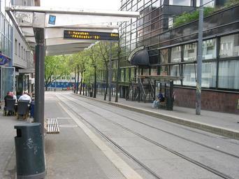 Keywords: Holbergsplass station.jpg en Holbergsplass station Oslo Looking south own Punkmorten 2009-05-03 Holbergs plass tram station