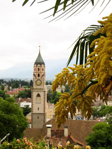 Keywords: holiday italy south tyrol meran palm bloom blossom bloom church view